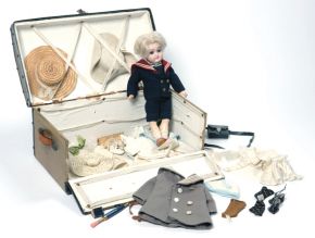 The Museum of Childhood has a doll called ‘Cedric’ and his trunk of clothes, Cedric was made in 1900 by the German manufacturer Simon & Halbig and is sporting a sailor’s outfit and clearly in the trunk is a straw boater.