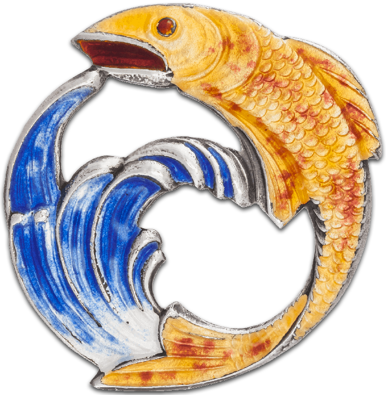 With all the rain we are having, I decided a fish would be an appropriate brooch for wet July. This enamel brooch was manufactured by A H Darby & Son, who were based in Birmingham. It is hallmarked for 1946. After WWII materials for luxury items were in scarce supply in the UK. It is interesting to compare the quality of enamelling work on this brooch with that of the Norwegian enamellists who emerged a few years later during the 1950s and onwards. The enamelling on the fish brooch is good, but not nearly to the same standard or finesse of the Norwegian enamellists. I have a number of brooches by a variety of Norwegian designers, for example, Karl Rasmussen, Oystein Balle and Will Winæss who worked for David Andersen. They have a delicacy of touch which is missing in the fish brooch.