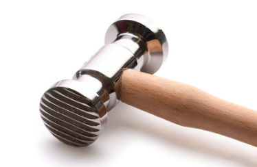 This brooch is silver gilt by Gerald Benney, one of the most influential British silversmiths during the second half of the 20th century. The feather brooch has been hand-embossed with a technique known as ‘Benney Bark’, whereby the surface has been gently hammered with a silversmithing hammer which has been chiselled to create ridges and troughs, the result is a series of small irregular indentation made across the surface. Traditionally silversmith hammers have a smooth head.