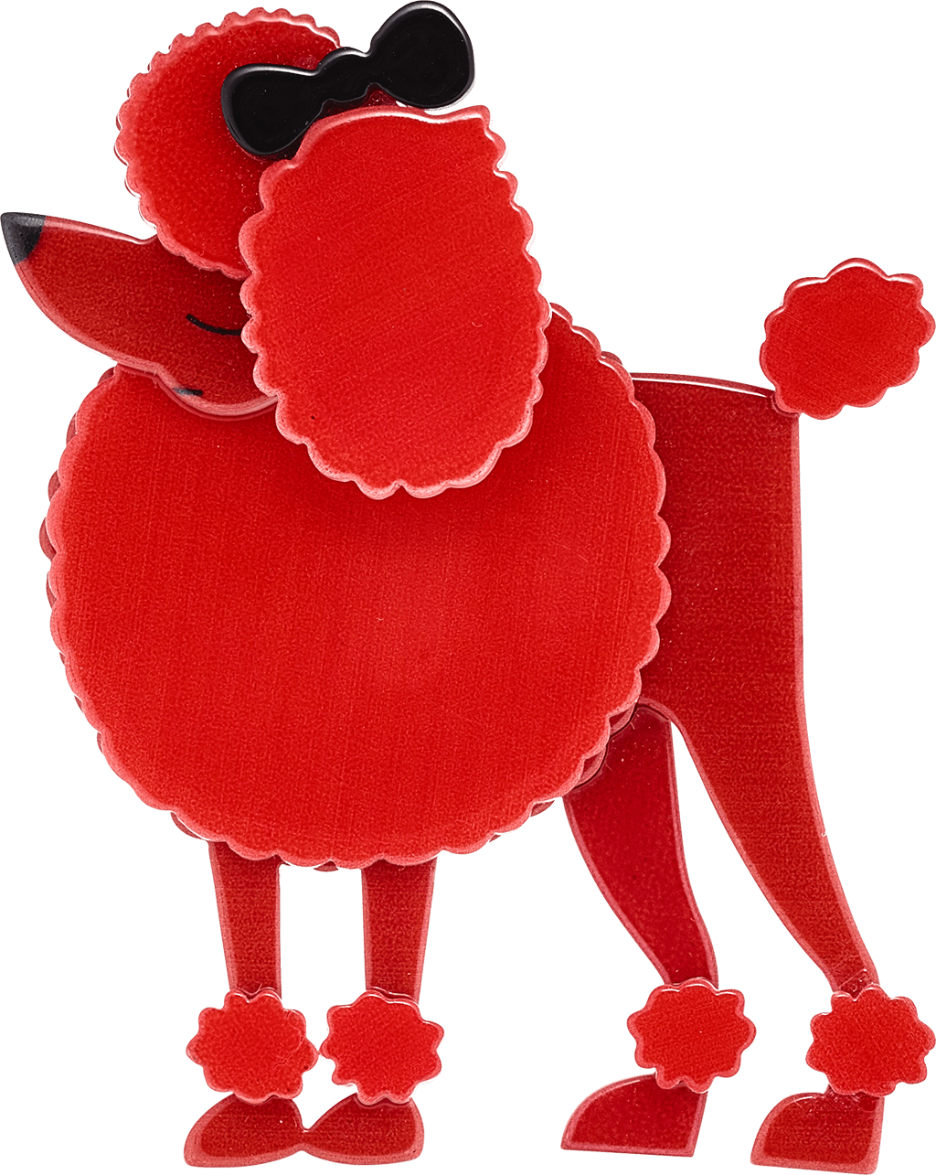 This strutting pink poodle is designed by Louisa Camille for Erstwilder. Louisa Camille is based in Melbourne, Australia, so this pink madam has travelled over 10,500 miles to join my collection. When you buy a piece of Erstwilder jewellery it comes in a distinctive round box with a pink lid. Erstwilder brooches are made of layered resin and are distinctive in terms of their colour and quirky design. They appeal to the vintage retro market that is popular at the moment. I’ve always loved plastic jewellery some of my earliest pieces were Lea Stein and I continue to buy plastic/resin brooches when I see eye-catching or unusual designs.