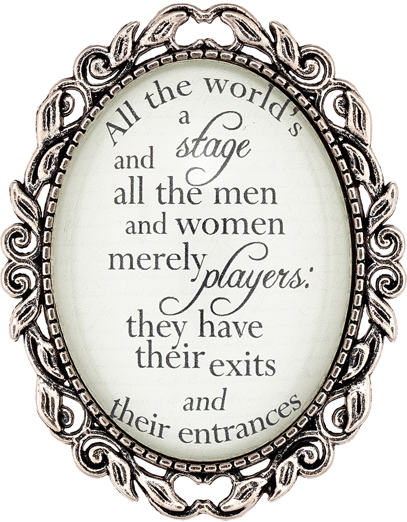 This month’s brooch is made by the small crafting company Scibbelicious located in Wales started by an English teacher. They are based in an old converted barn which they have filled with damaged and discarded books they have rescued and now turn into jewellery. My brooch has one of my favourite quotes from As You Like It (Act 2 Scene 7) – Jaques is speaking to Duke Senior.