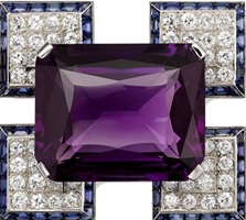 One of my favourite pieces is an amethyst, sapphire and diamond brooch set in platinum 1933 made for Nelly Cartier by her husband Jacques Cartier as a present. The brooch symbolised their family. Nelly was the amethyst at the centre, surrounded by their four children, the diamond corners and Jacques the sapphires around the edge. Sapphires were Jacques’s birth stone and a particular favourite.