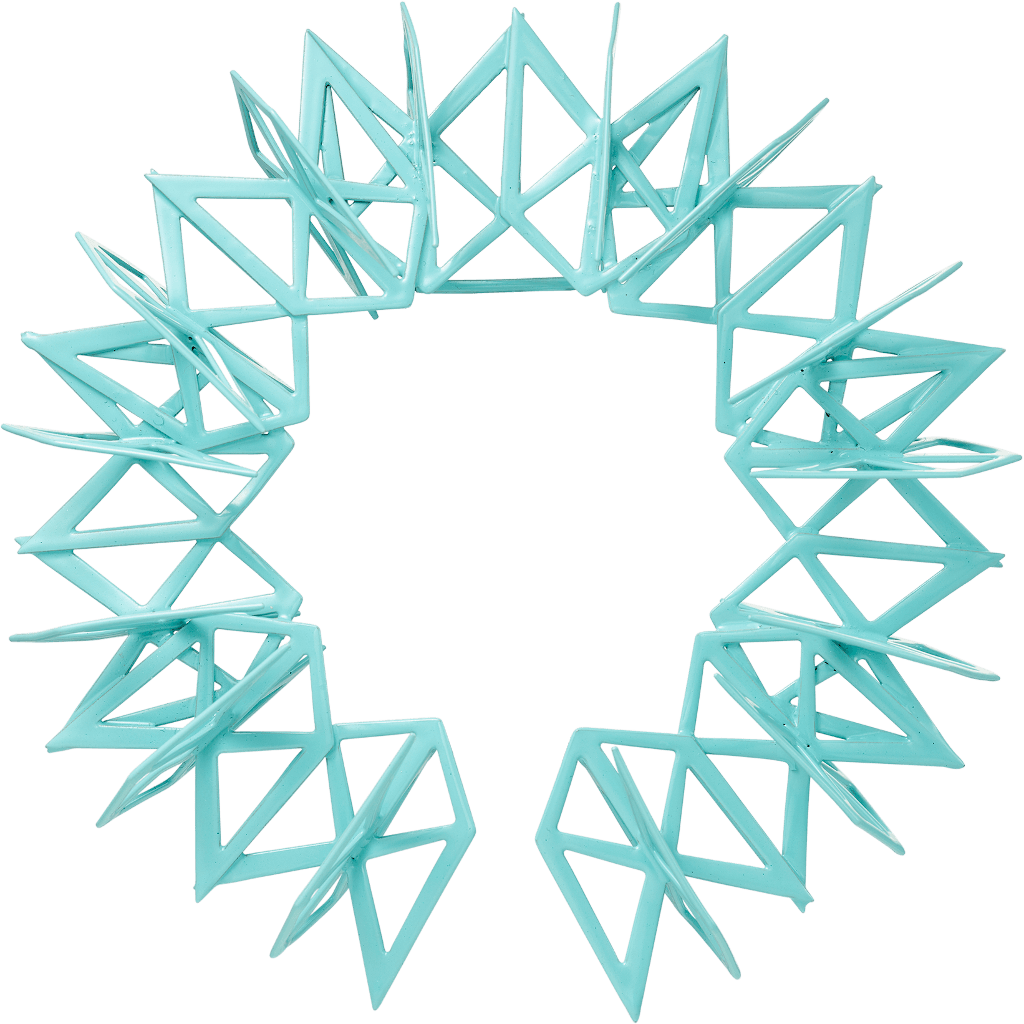 The inspiration for my brooch was the Great Court roof at the British Museum. Claire explained “my whole degree show work was inspired by “looking up” – we are all too often looking at phones and not appreciating the architecture or scenery around us, for example, train station roofs. The British museum roof in particular caught my eye – if you look long enough you start to see lots of different shapes with the steel overlapping. The colours I chose were to replicate the sky.”