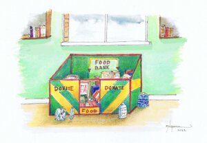 After the success of the Book Bank I was asked by the Council whether the library would have a Food Bank Box. They are looking for more drop off points in the town as demand is increasing. I have put Beth in charge, her grasp of social media and how to drive donations is far superior to Malcolm’s or mine. This morning a series of large multi-coloured pieces of cardboard tied together by plastic binding was delivered with a note attached, ‘Assembly Instructions’. The instructions were simply a QR code. Beth tapped away at her phone and brought up a YouTube cartoon of a man constructing the box with helpful dos and don’ts emitting from a cartoon mouth on a packet of cereal. I left Beth and Malcom to watch the video. Two hours later the library became the proud possessor of an over-sized Food Bank Collection Box. Roll in the tins, jars, and packets.