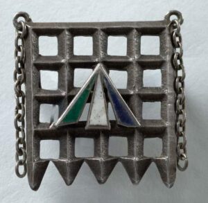 The silver and enamel brooch designed by Sylvia Pankhurst, the design of the brooch is the Portcullis of the House of Commons and the arrow shows the three colours of the Suffragettes. The brooch is now in the Museum of London where a modern facsimile can be bought. I might pop along some day and purchase one for my collection.